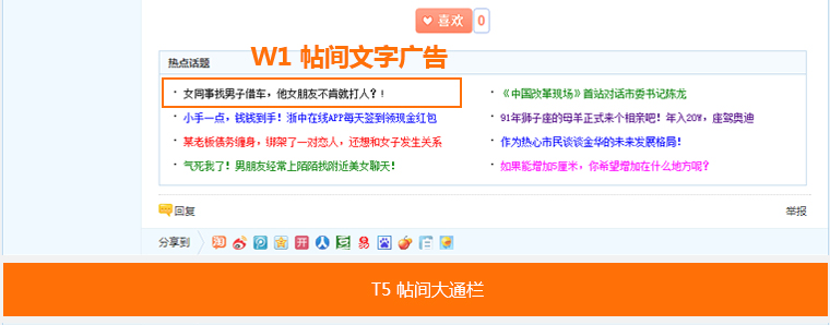 | W1 | 300元/天 (全論壇) | 帖間文字廣告 前4樓,12-20字 |